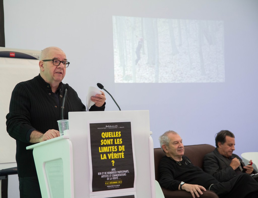 « Quelles sont les limites de la vérité ? » Telle était la question posée par Ben Vautier pour ce colloque organisé par Alain Goulesque les 4 et 5 décembre 2015 à la Fondation du doute à Blois avec une quinzaine d’invités.